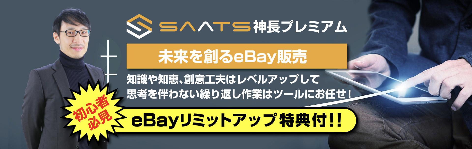 SAATSプレミアムではeBayビジネスとAmazonビジネスという2つのセグメントに分け、その道のスペシャリストを講師としてお招きしてコンサルティング及びビジネスサポートを行っていただく、SAATSのワンランク上のプレミアムプランとなります。