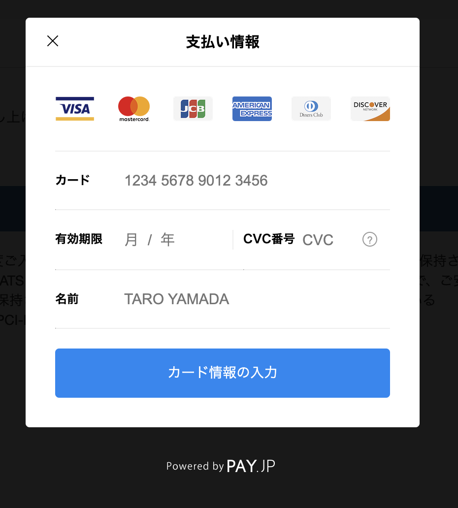 2)クレジットカードの情報を入力し「カード情報の入力」ボタンをクリックします