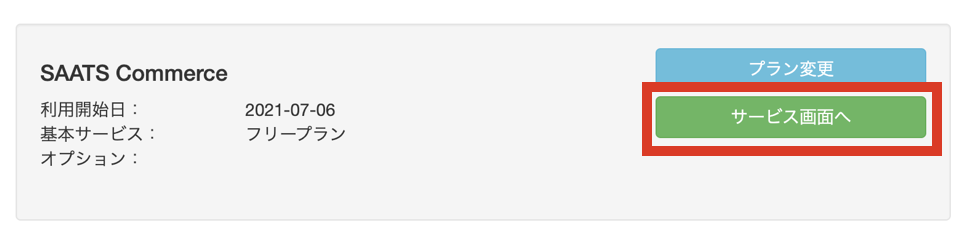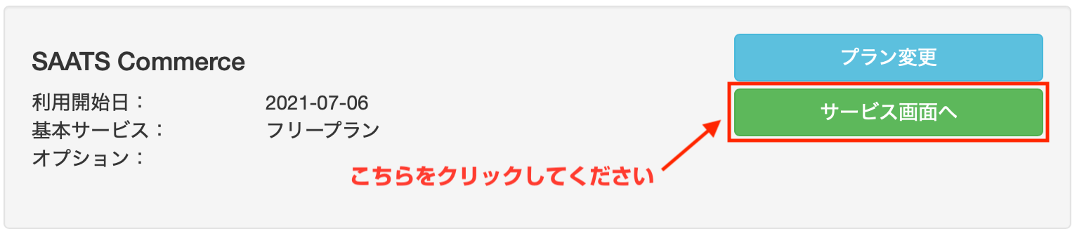 1)SAATSコマースにログインし、次に表示される画面で「サービス画面へ」をクリックします。