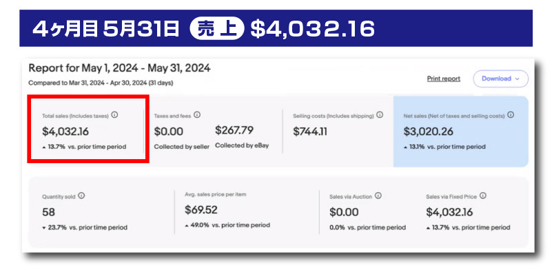 私はeBayアカウントも持っていなかったので最初の3ヶ月くらいは苦労しました。最初の一品を出品できた時は感無量でした。でも苦労して出品できても全く売れず、利益も出ず不安でした。でも絶対に結果を出したかったのでグループコンサルに出席して他の塾生のみなさんのやり方を学び、講師のお二人には何度も個別で相談をさせていただき、成功できることを信じて毎日コツコツ出品をし続けました。その甲斐あって、今では毎日商品が売れるようになり、ようやく利益を出せるようになりました。